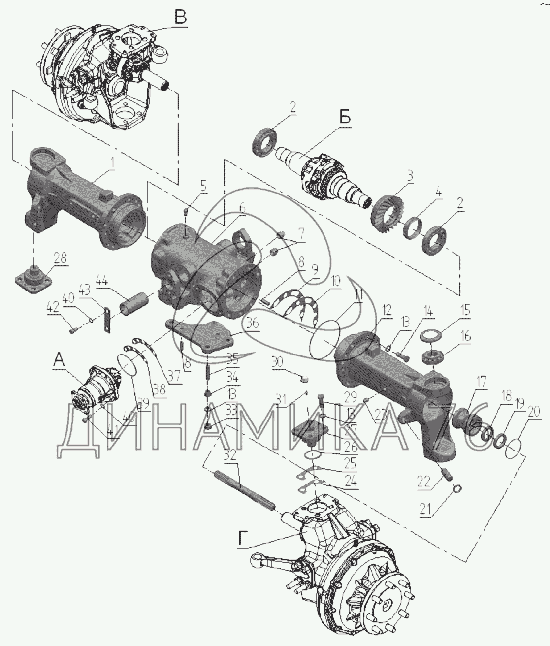 Перечень комплектующих от Передний ведущий мост 822-2300020 на 1220