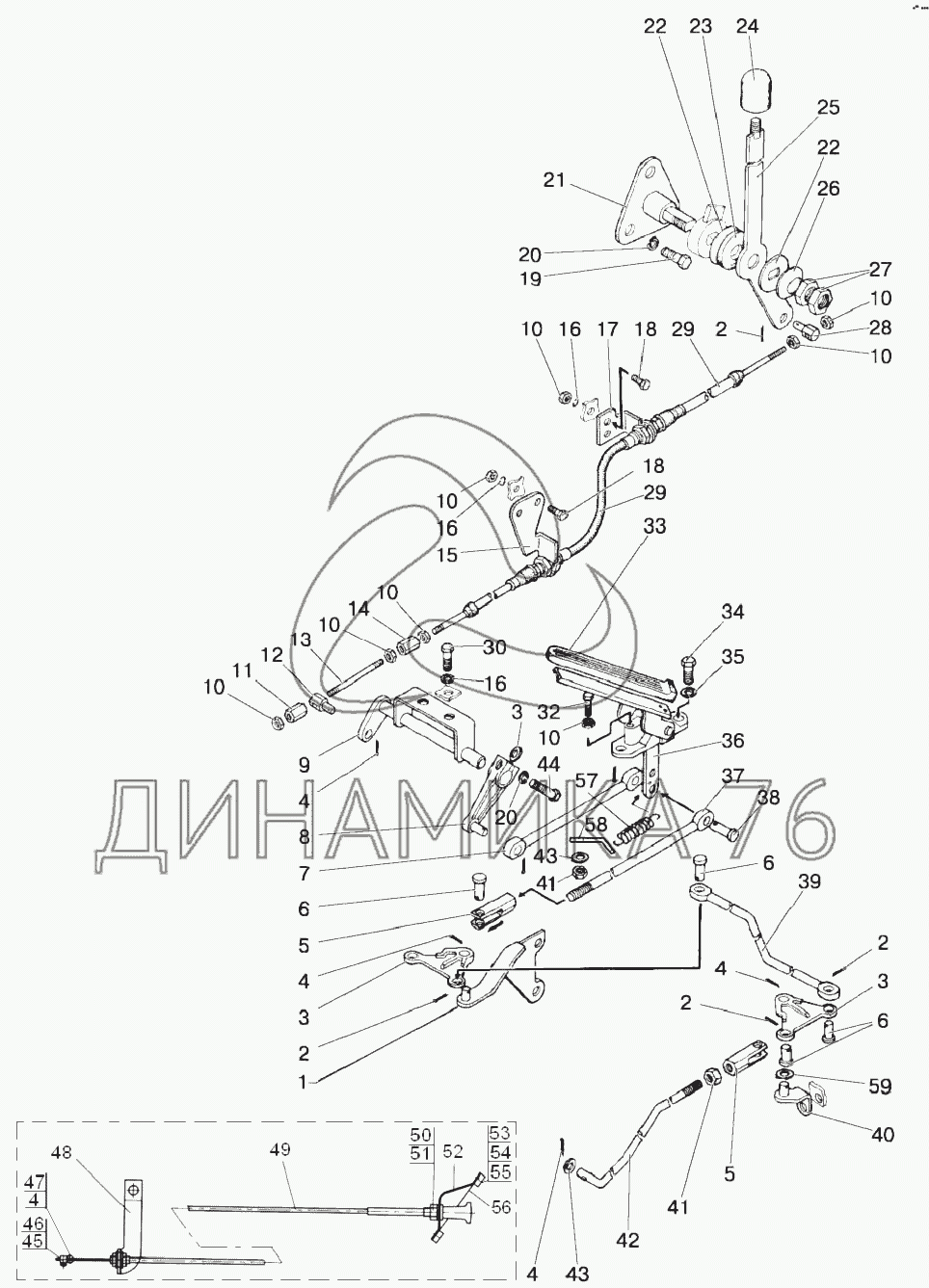 Перечень комплектующих от Управление подачей топлива (с гидроподъемником) на 1220