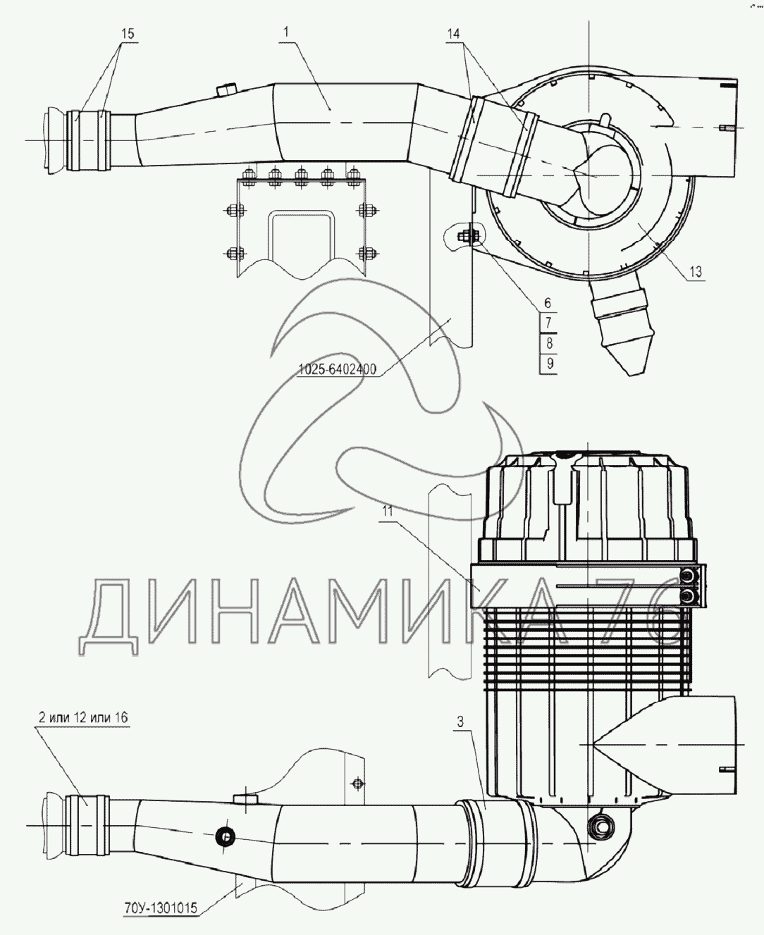 Перечень комплектующих от Установка воздухоочистителя «Donaldson» (Д-245.2S2) на 1220