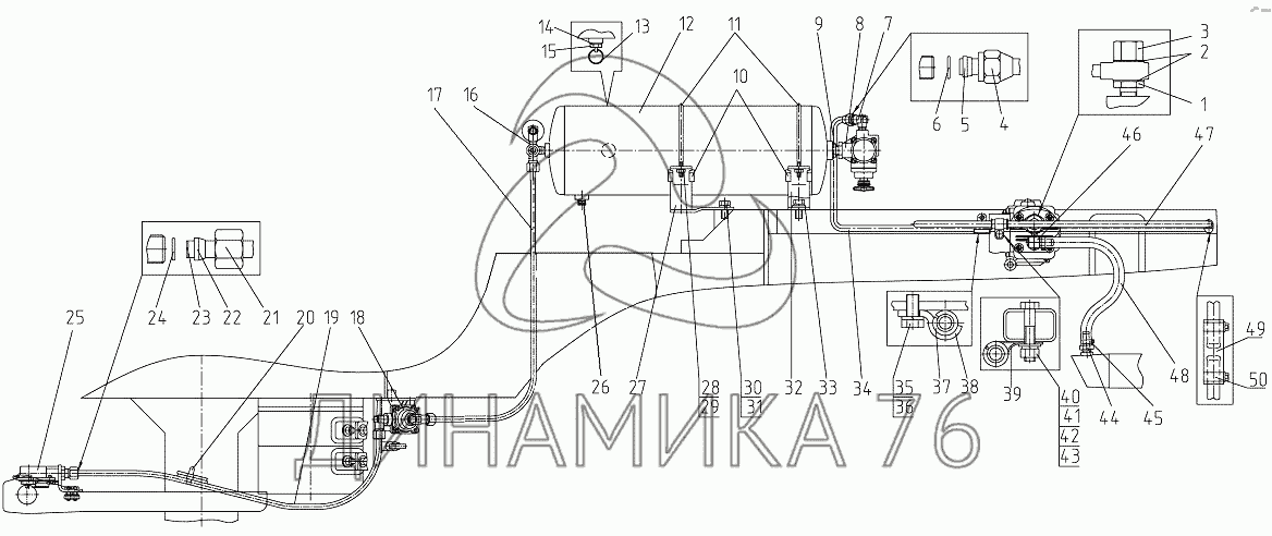 Перечень комплектующих от Пневмопривод 1220-3506005 (однопроводный) на 1220.5