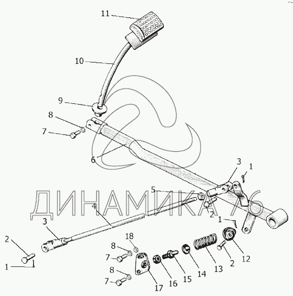 Перечень комплектующих от Управление сцеплением на 1220.5
