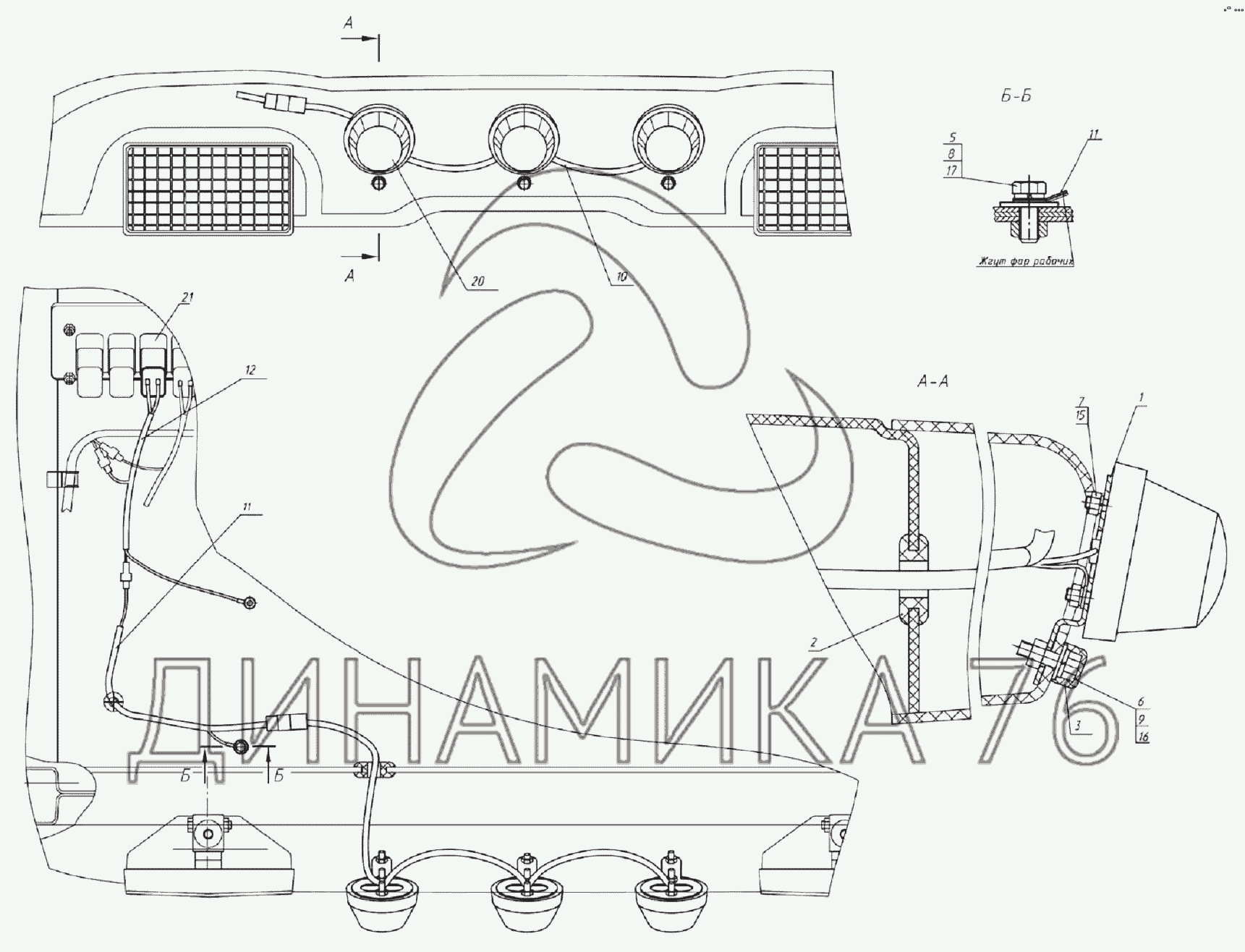 Перечень комплектующих от Установка фонарей автопоезда на 1220.5
