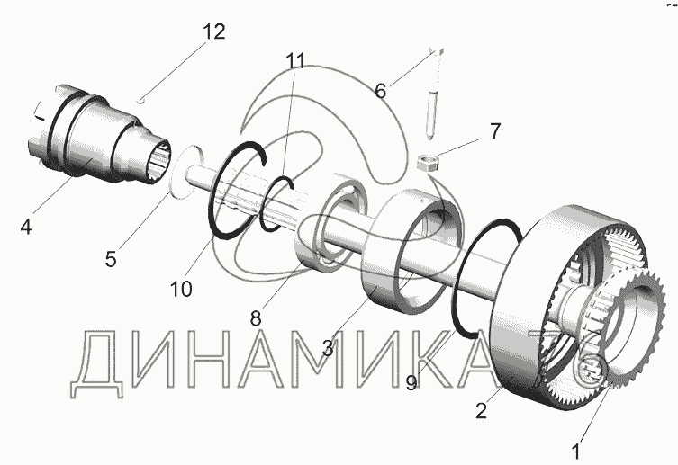 Перечень комплектующих от Вал отбора мощности задний на 1220.5