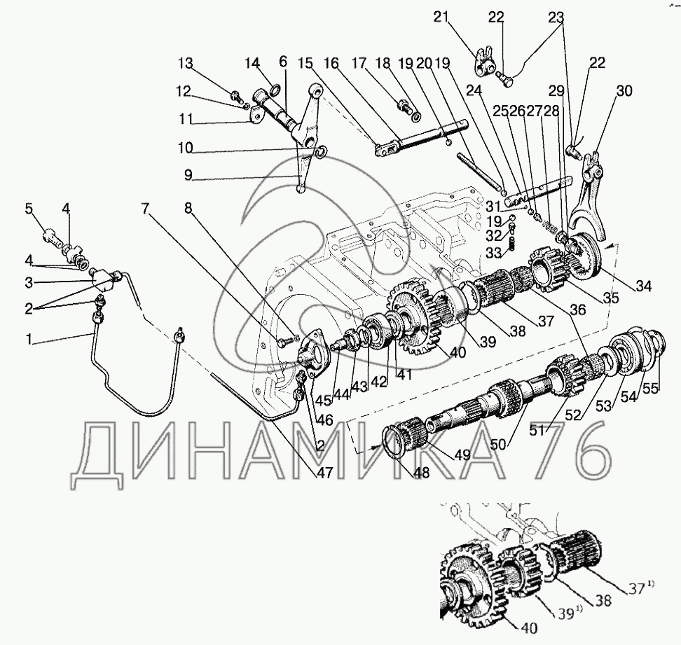 Перечень комплектующих от Вал пониженных передач (16F+8R) на 1220.5
