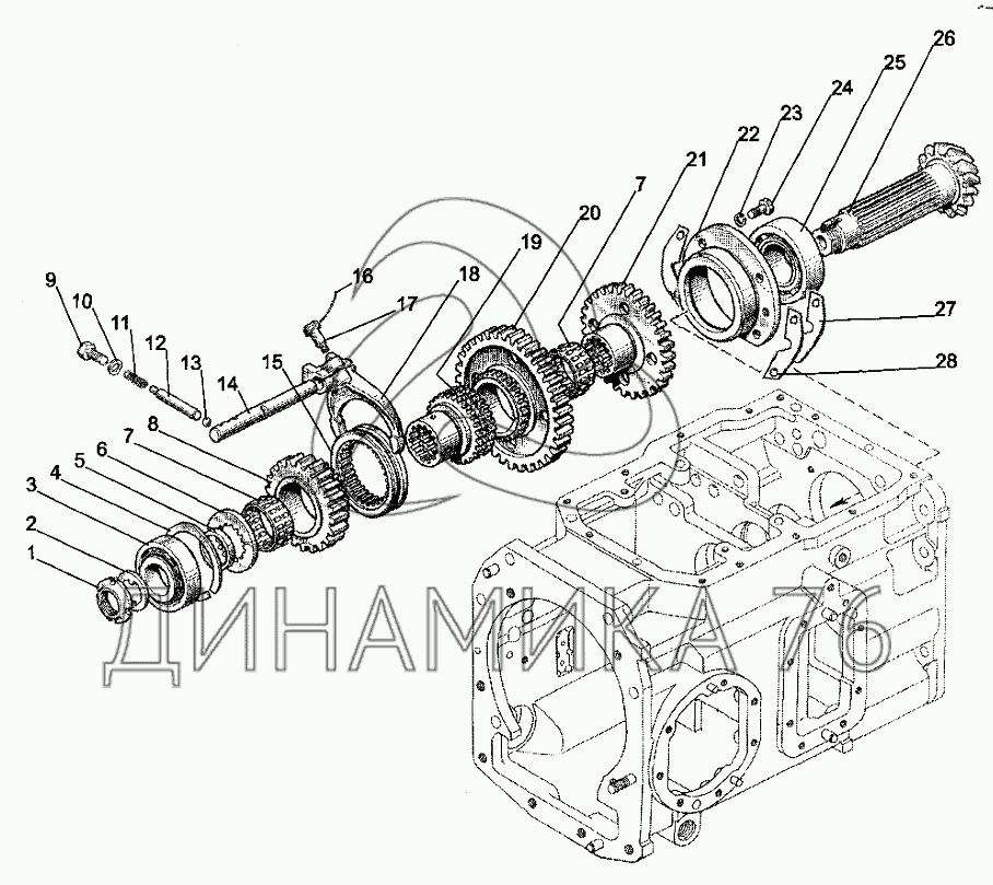 Перечень комплектующих от Вал вторичный (16F+8R) на 1220.5