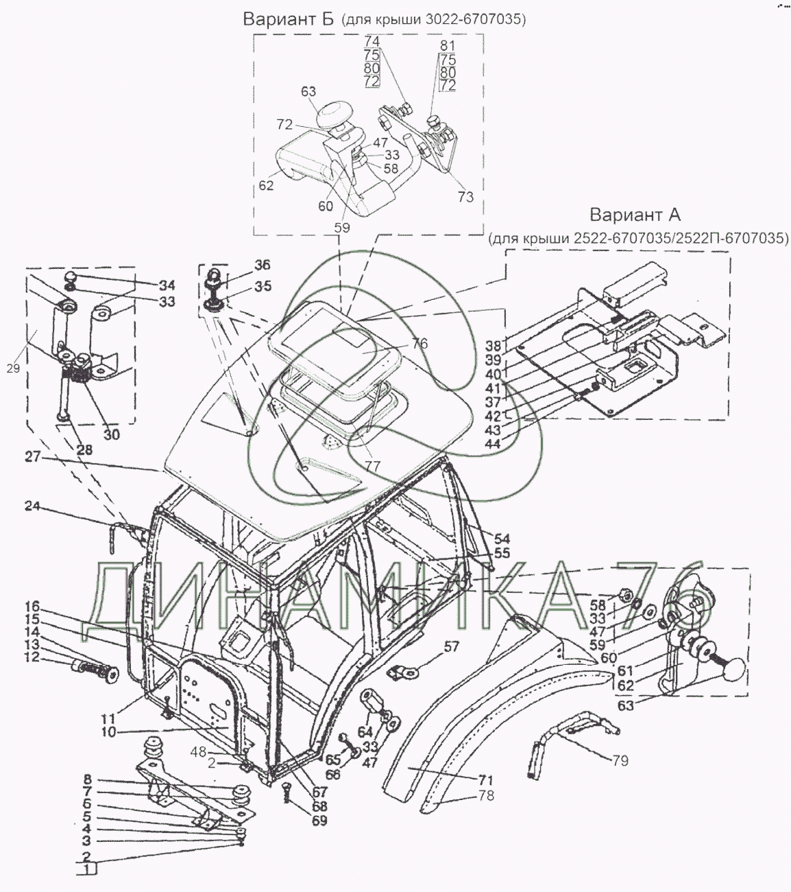 Схемы запчастей предназначены для справочных целей! Мы продаем не все запчасти от Кабина трактора на 1523.5, представленные в этом списке.
