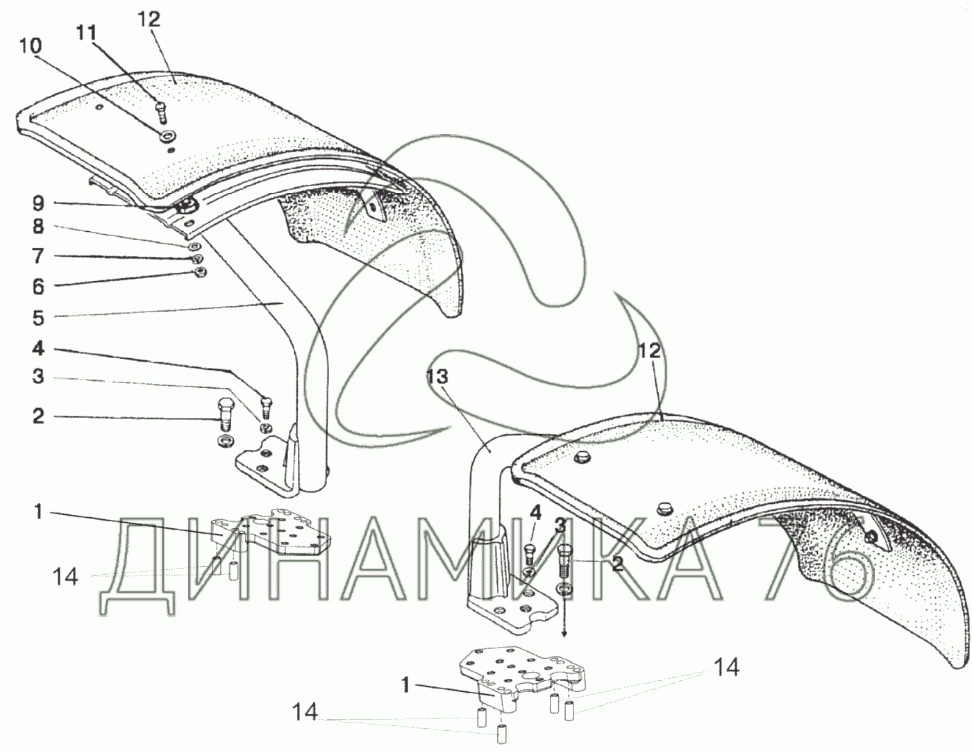 Перечень комплектующих от Крылья передних колес на 1523.5