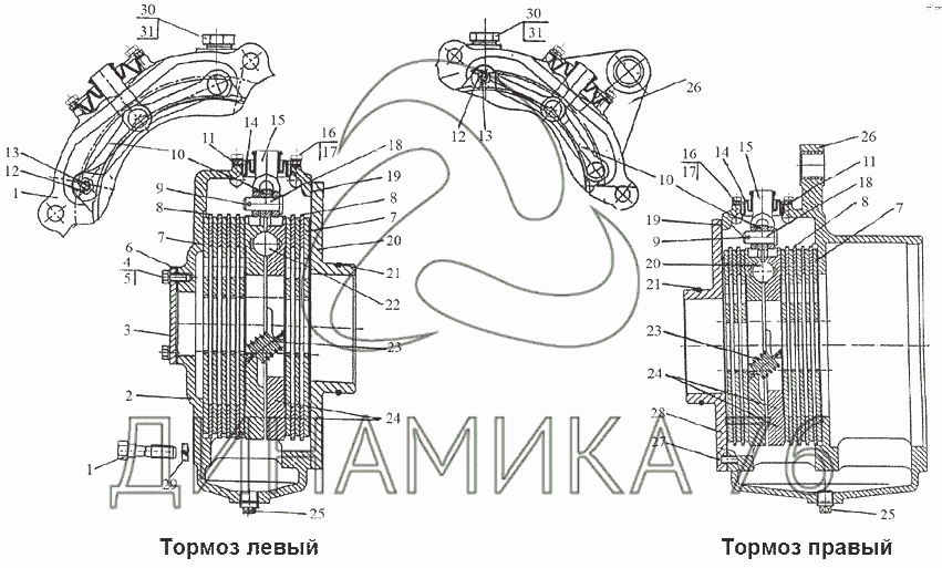 Перечень комплектующих от Тормоза «мокрые» на 1523.5