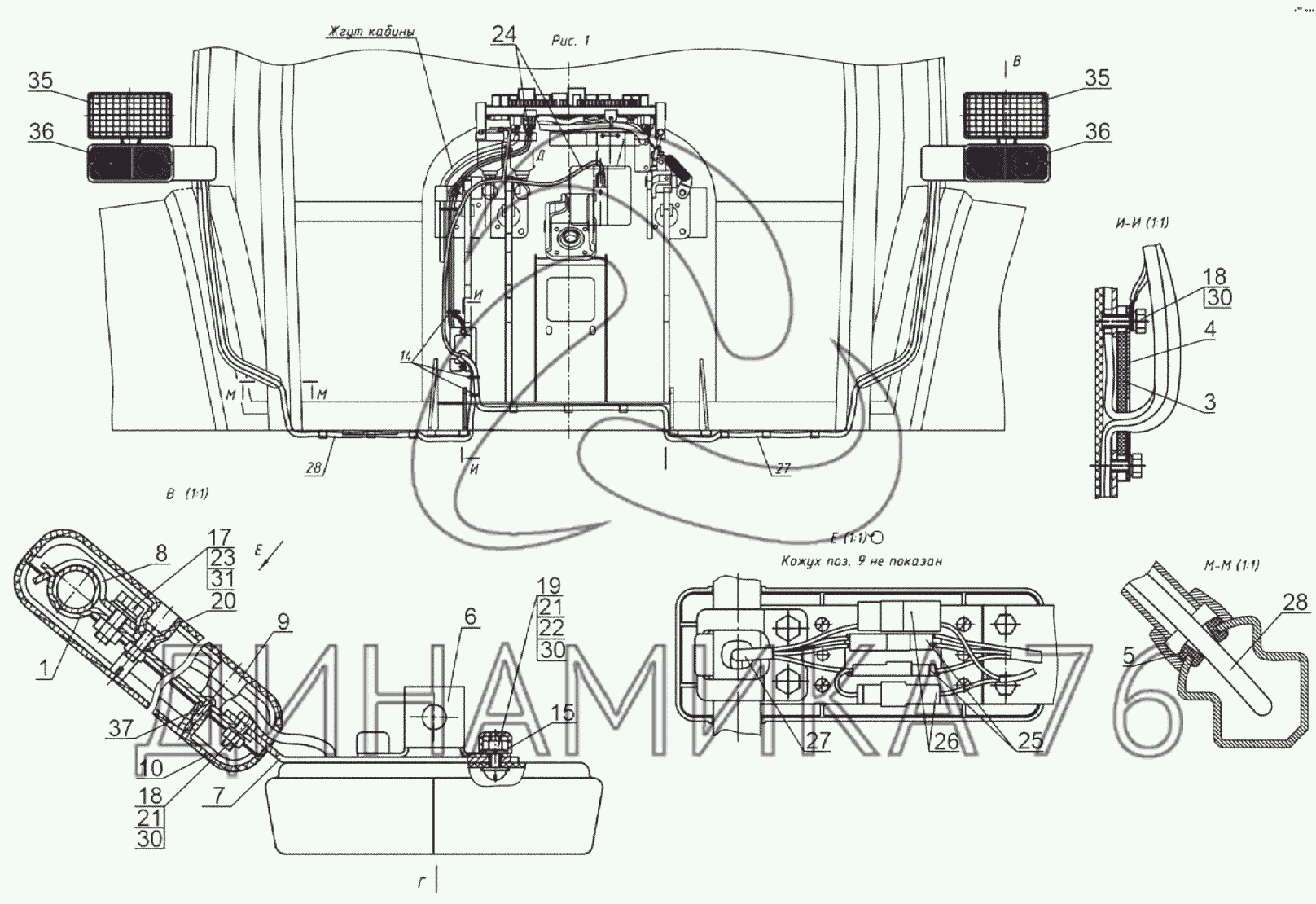 Перечень комплектующих от Установка фонарей передних на 1523.5 с ГМТ