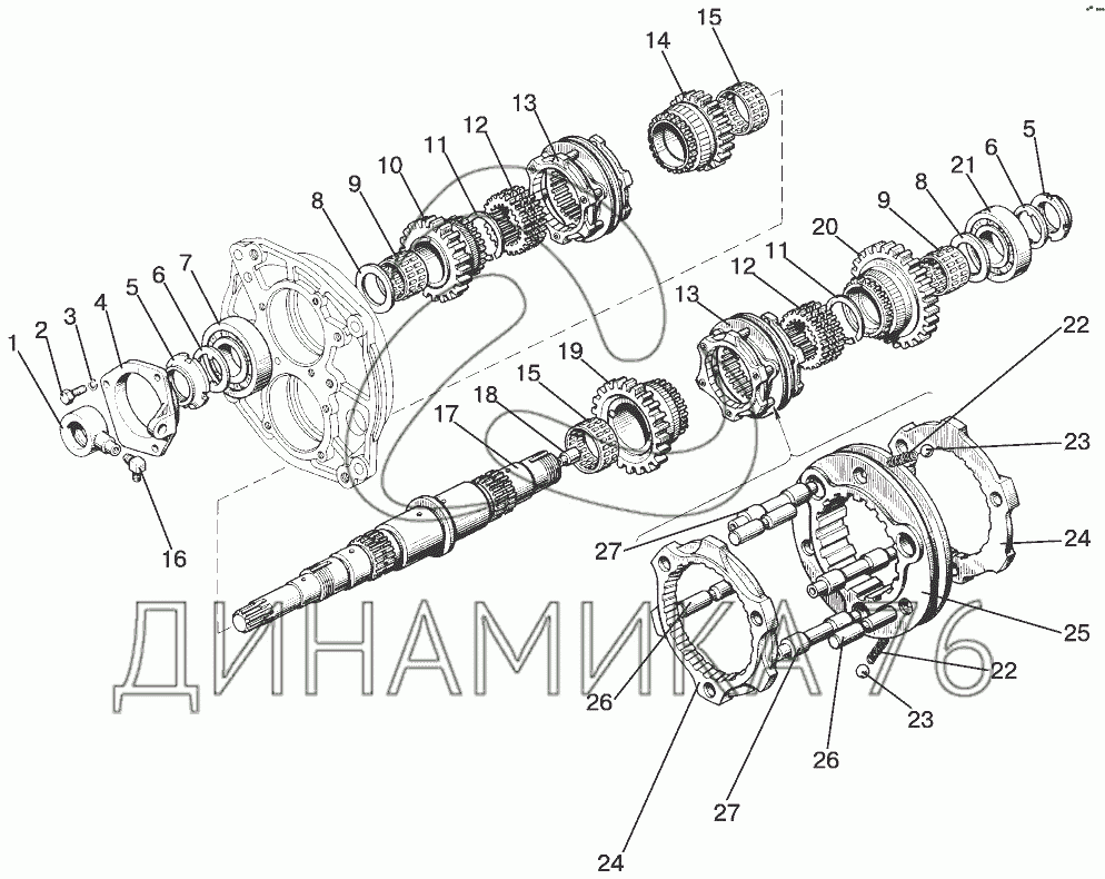 Узел передач и вал промежуточный