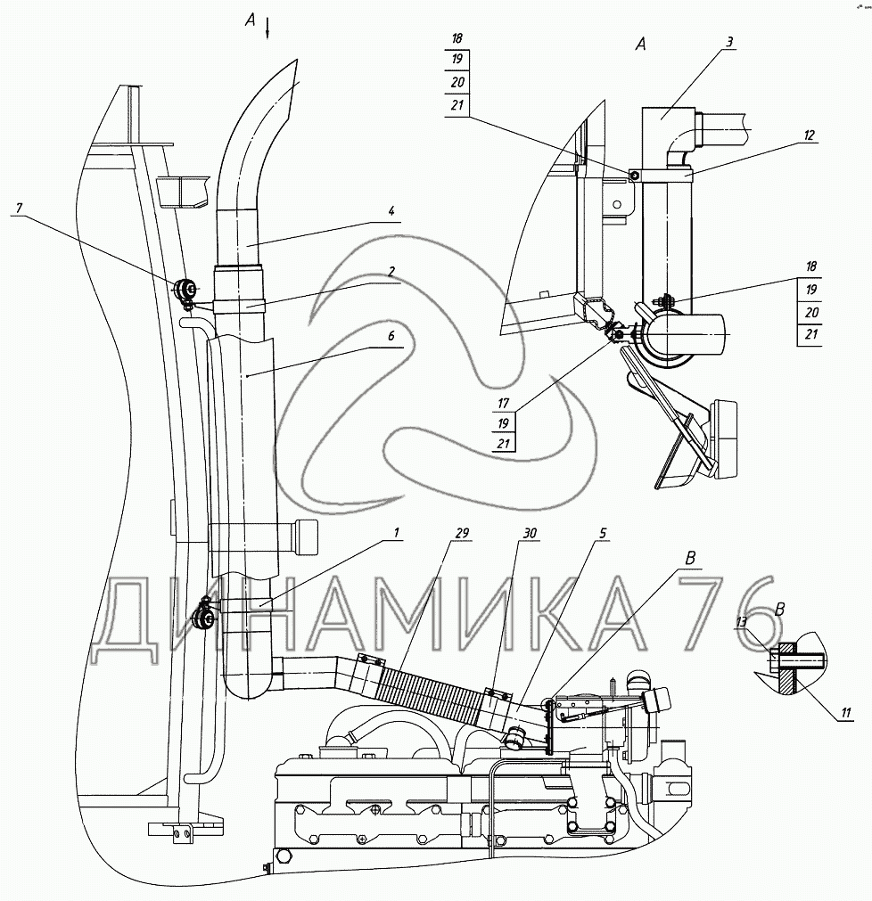 Перечень комплектующих от Установка глушителя на 2122.3/2122.4