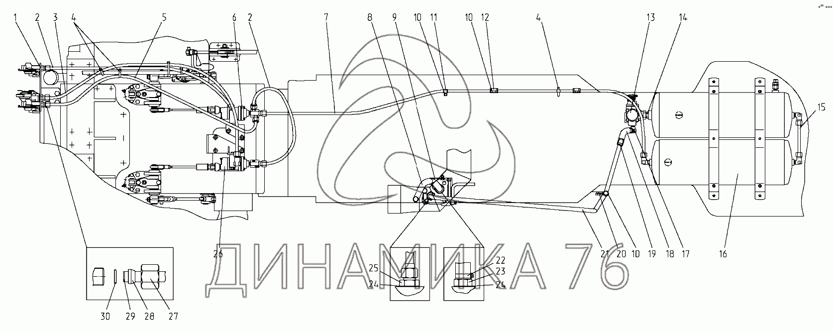 Перечень комплектующих от Пневмопривод тормозов прицепа (комбинированный) на 3022ДЦ.1