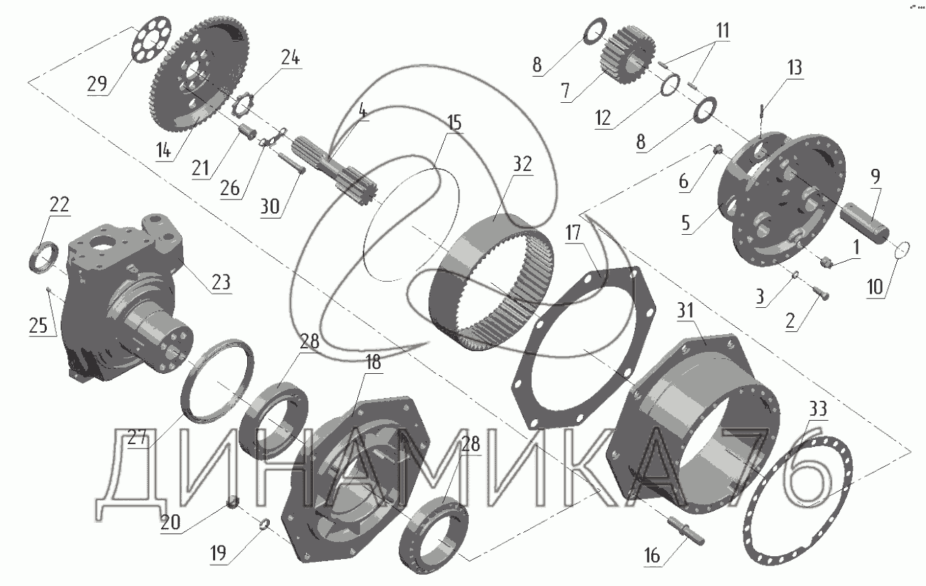 Перечень комплектующих от Редуктор колесный на 3022ДЦ.1