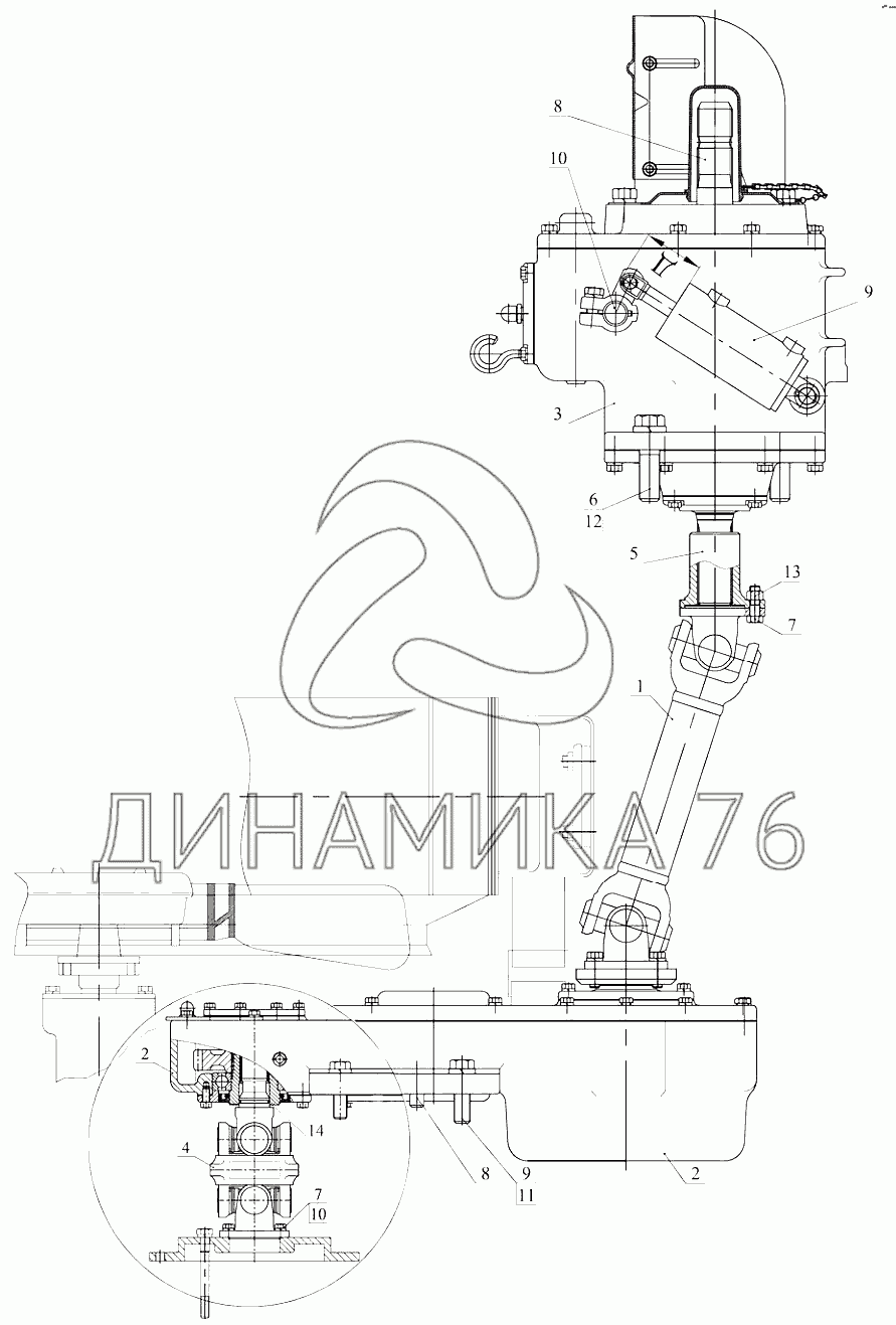 Перечень комплектующих от ВОМ передний на 3022ДЦ.1