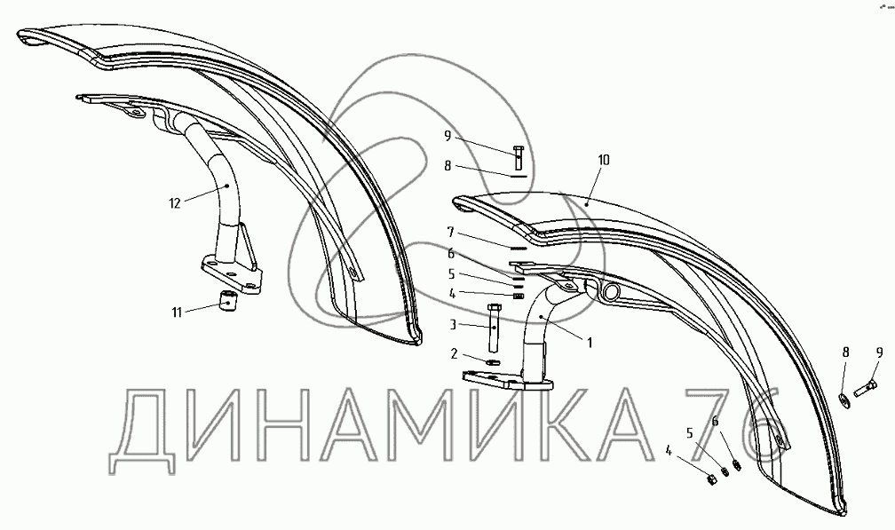 Перечень комплектующих от Крылья передних колес на 622