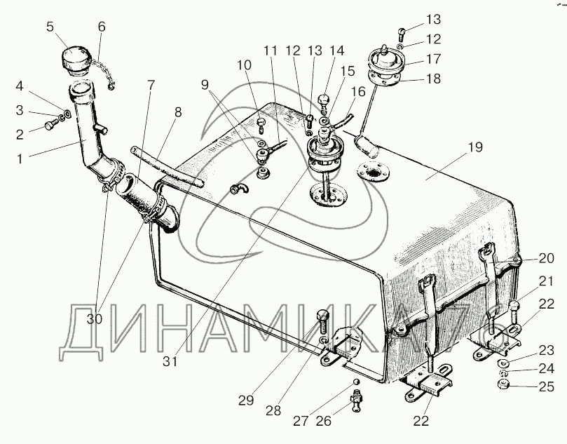 Перечень комплектующих от Бак топливный (ГНС с гидроподъемником) на 800/900