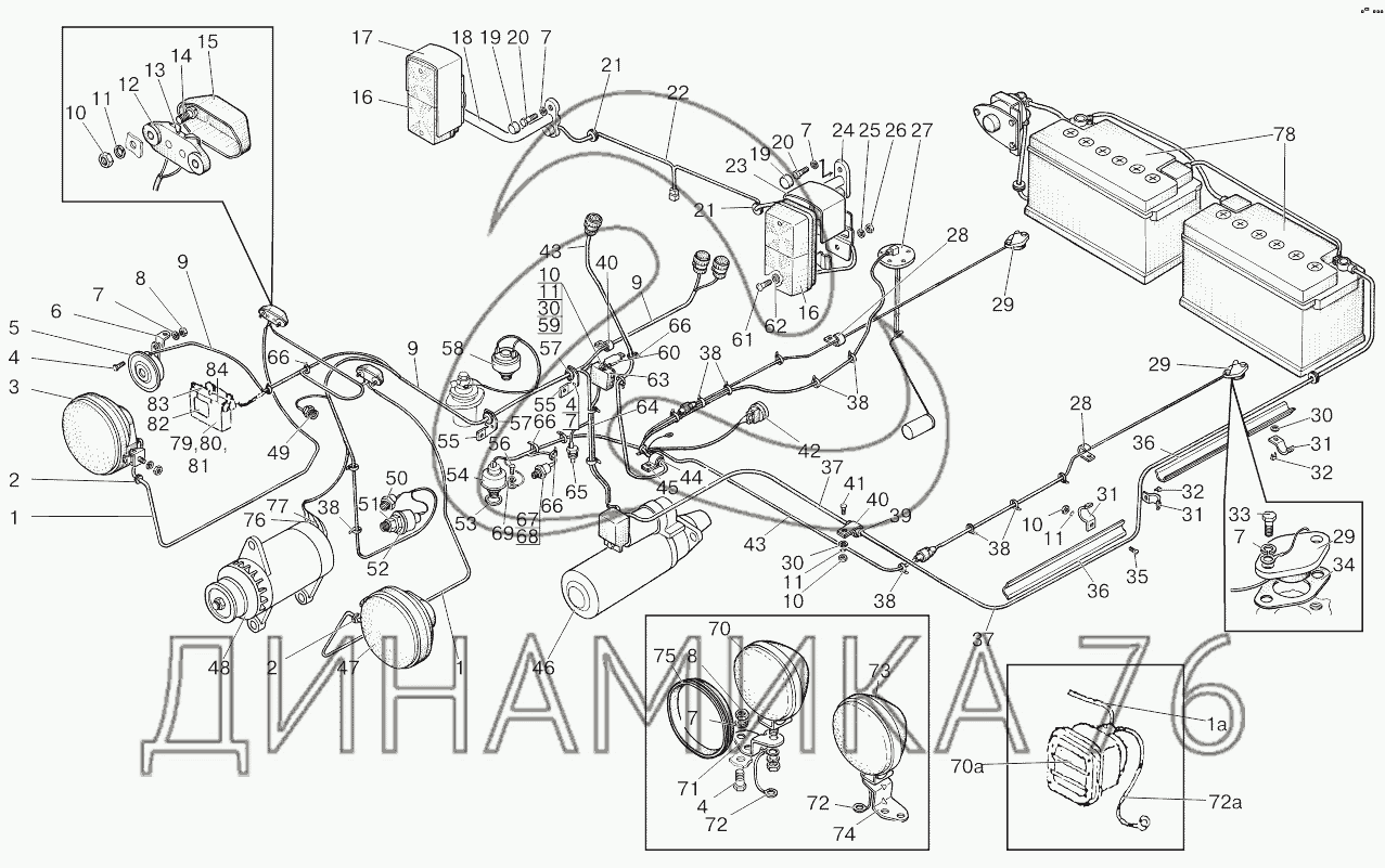 Перечень комплектующих от Электрооборудование двигателя и трансмиссии на 800/900