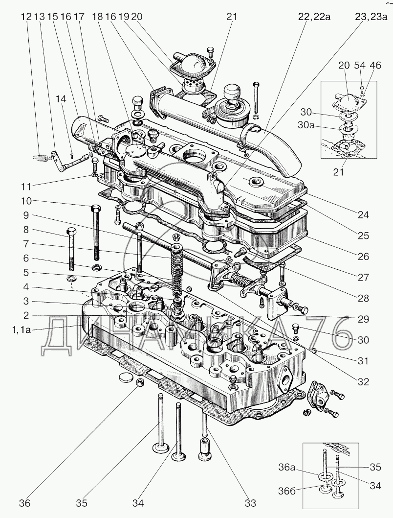 Перечень комплектующих от Головка цилиндров, клапаны и толкатели клапанов на 800/900