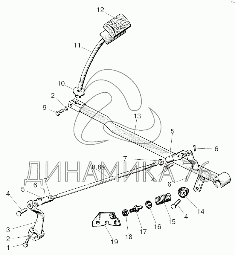 Перечень комплектующих от Привод выключения сцепления на 800/900
