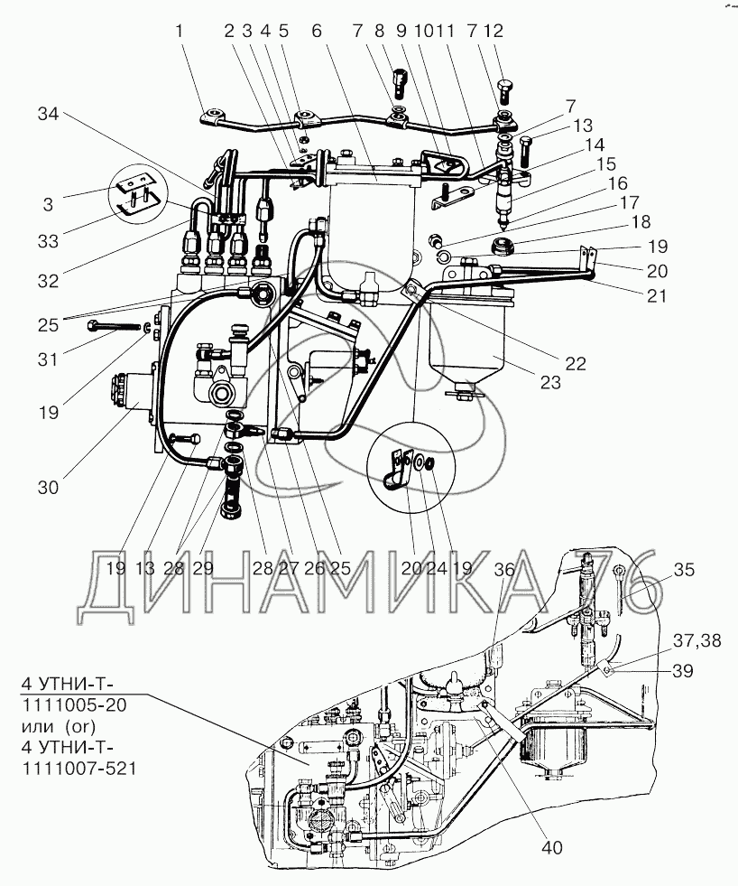 Перечень комплектующих от Трубопроводы топливные и установка топливной аппаратуры на 800/900