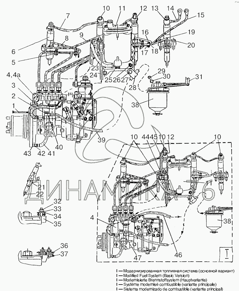 Перечень комплектующих от Трубопроводы топливные и установка топливной аппаратуры на 800/900
