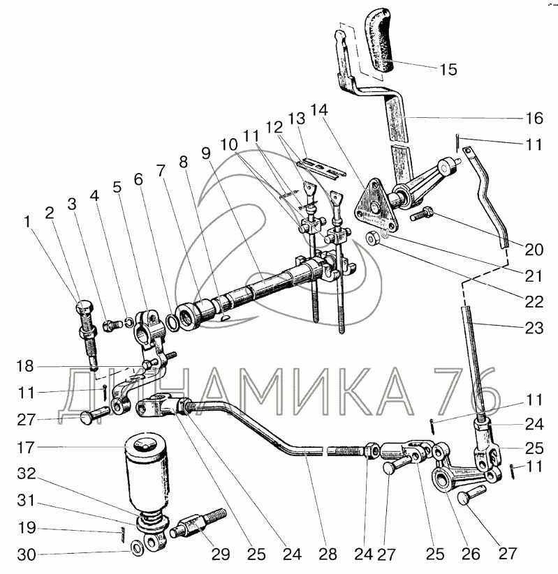 Валик управления с осью в сборе
