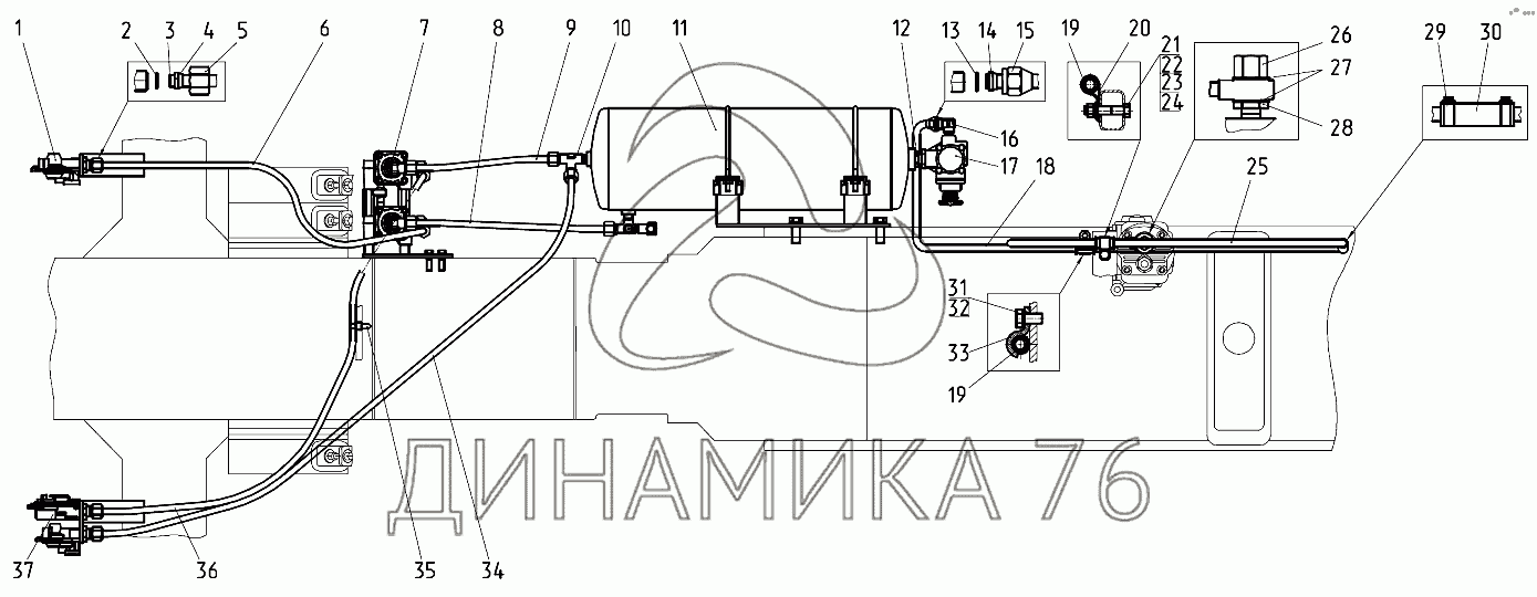 Перечень комплектующих от Пневмопривод 922-3506705/-01 на 922.3 / 922.4