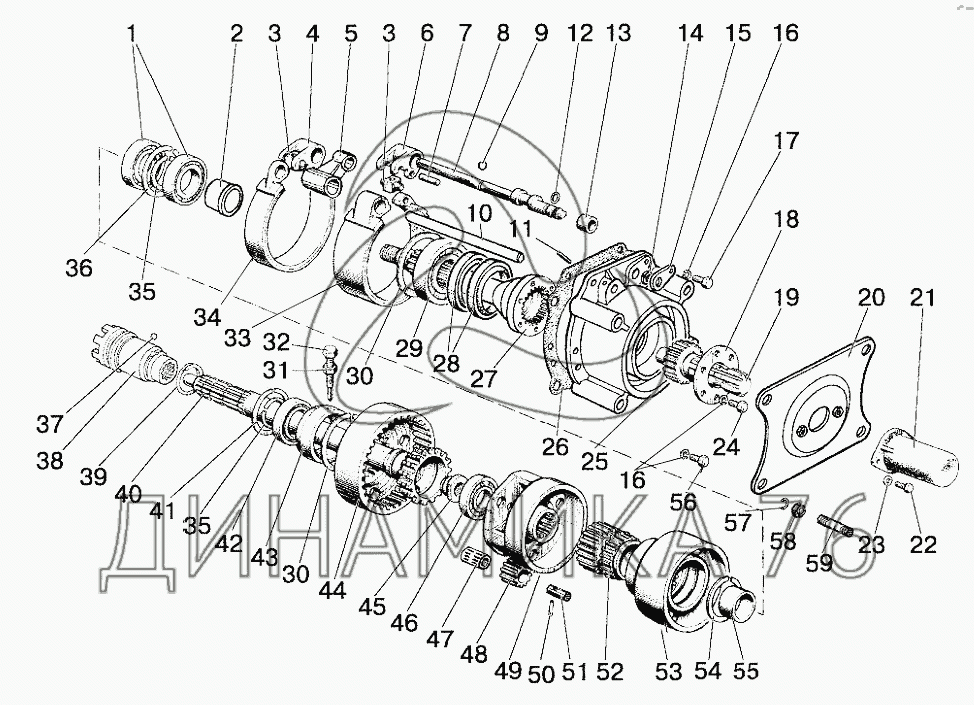 Перечень комплектующих от Вал отбора мощности задний на 923.4