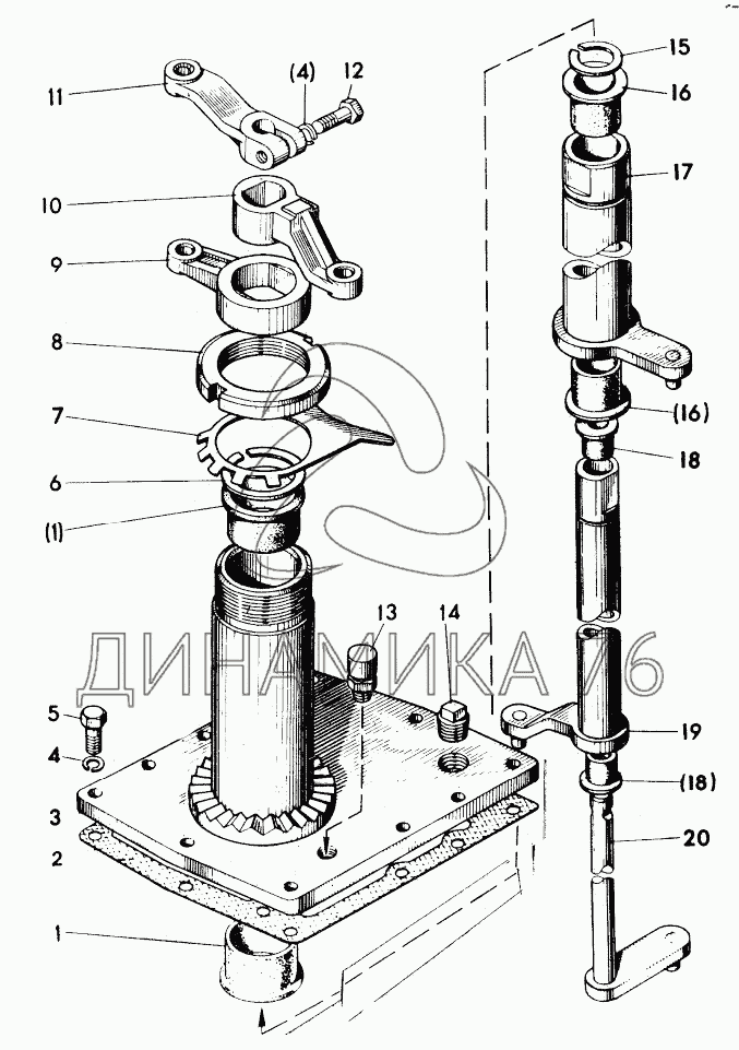 Перечень комплектующих от 05-1702. Механизм переключения передач на Беларус-08Н (09Н)