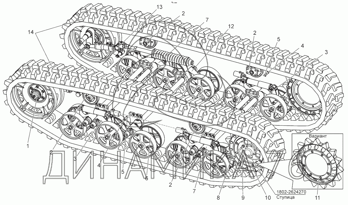 Перечень комплектующих от Движитель гусеничный на БЕЛАРУС 2103