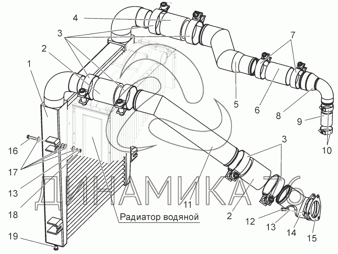 Перечень комплектующих от Охлаждение наддувочного воздуха на БЕЛАРУС 2103