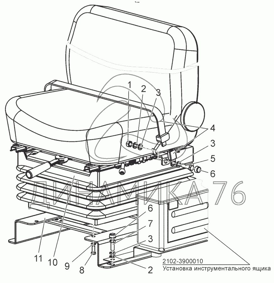 Перечень комплектующих от Установка сиденья на БЕЛАРУС 2103