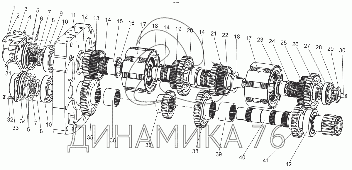 Узел передач. Вал промежуточный — БЕЛАРУС 2103: