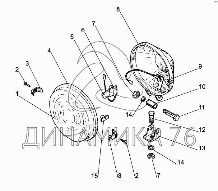 Перечень комплектующих от Фары;Lights на БЕЛАРУС 320