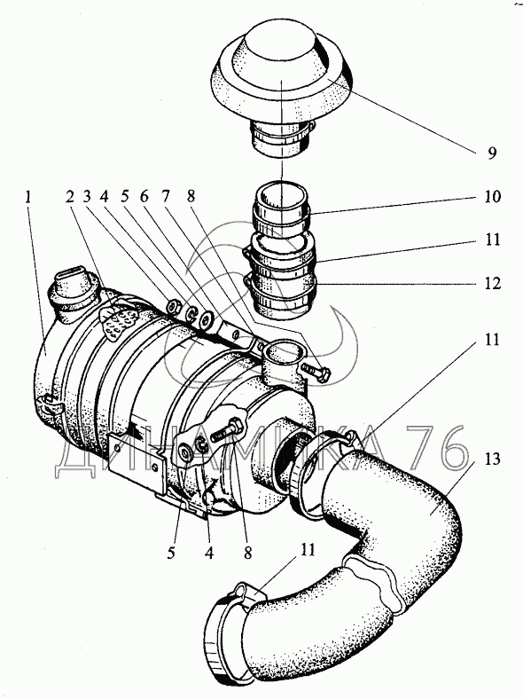 Тракт воздухопроводящий;Air Intake Piping на БЕЛАРУС 320 (до 1998 г.)