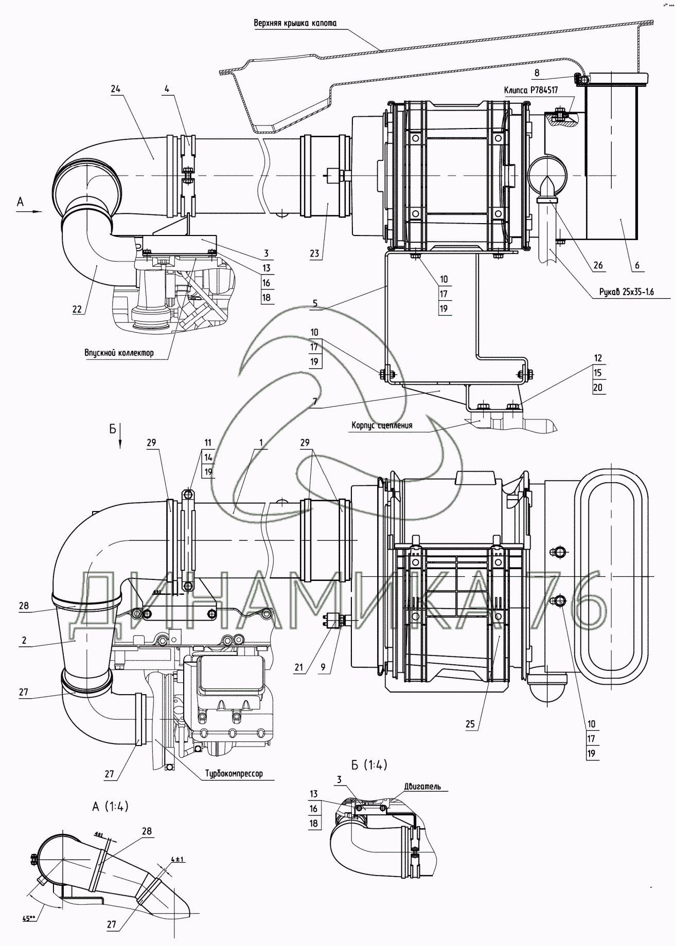 Перечень комплектующих от Установка воздухоочистителя на БЕЛАРУС 3522.5