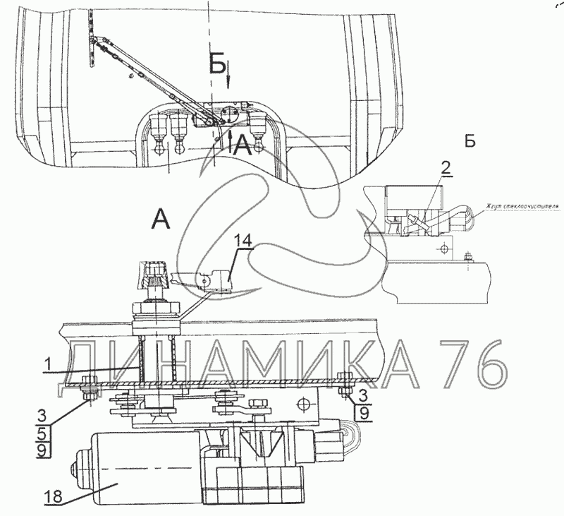 Установка переднего стеклоочистителя 923-5205010 — БЕЛАРУС 3525: