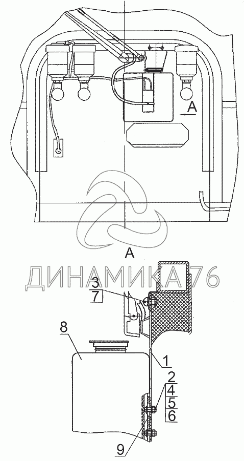 Установка стеклоомывателя переднего 2522-5208010 — БЕЛАРУС 3525: