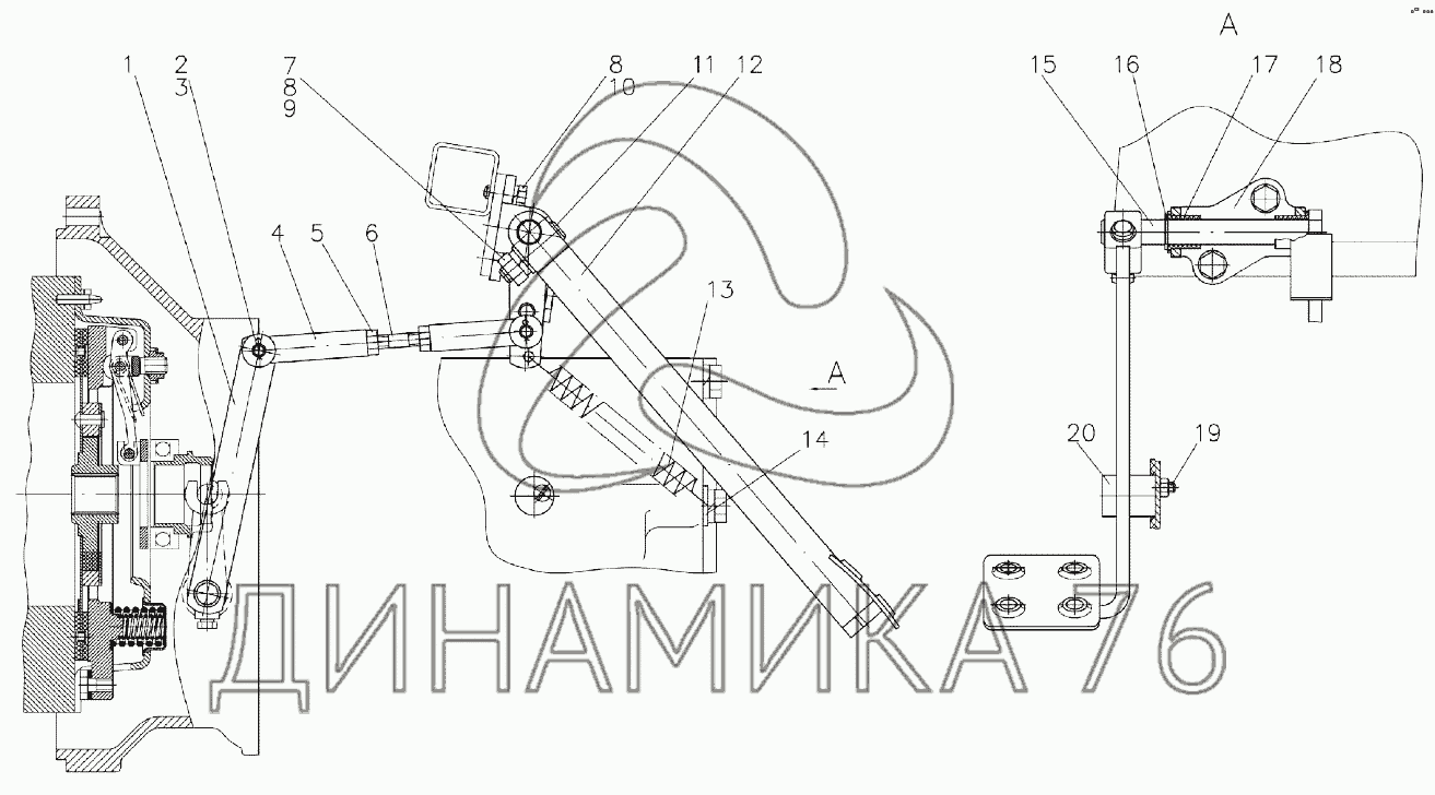 Перечень комплектующих от Управление сцеплением на Беларус-422.1