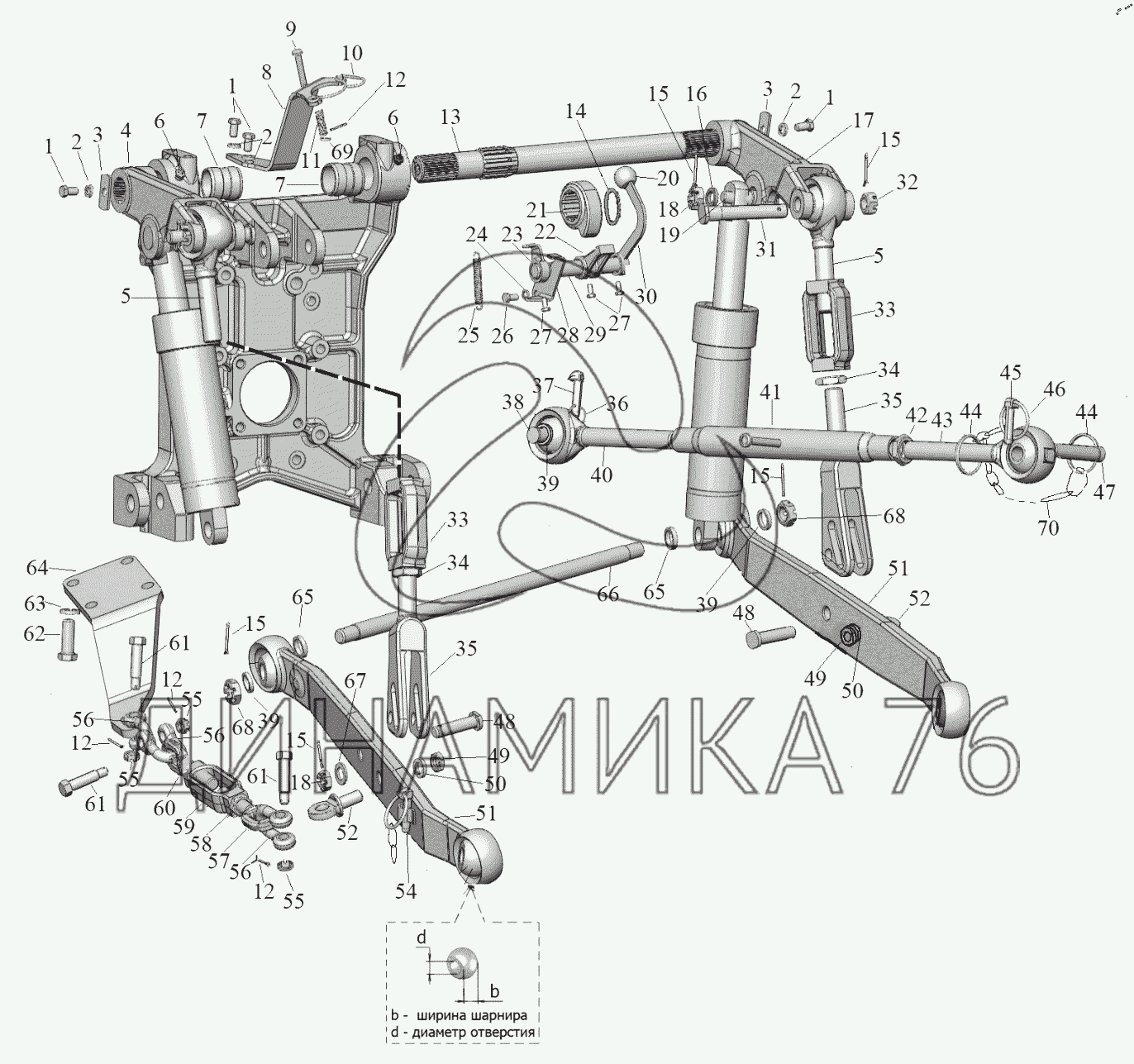 Перечень комплектующих от Механизм задней навески на БЕЛАРУС 451