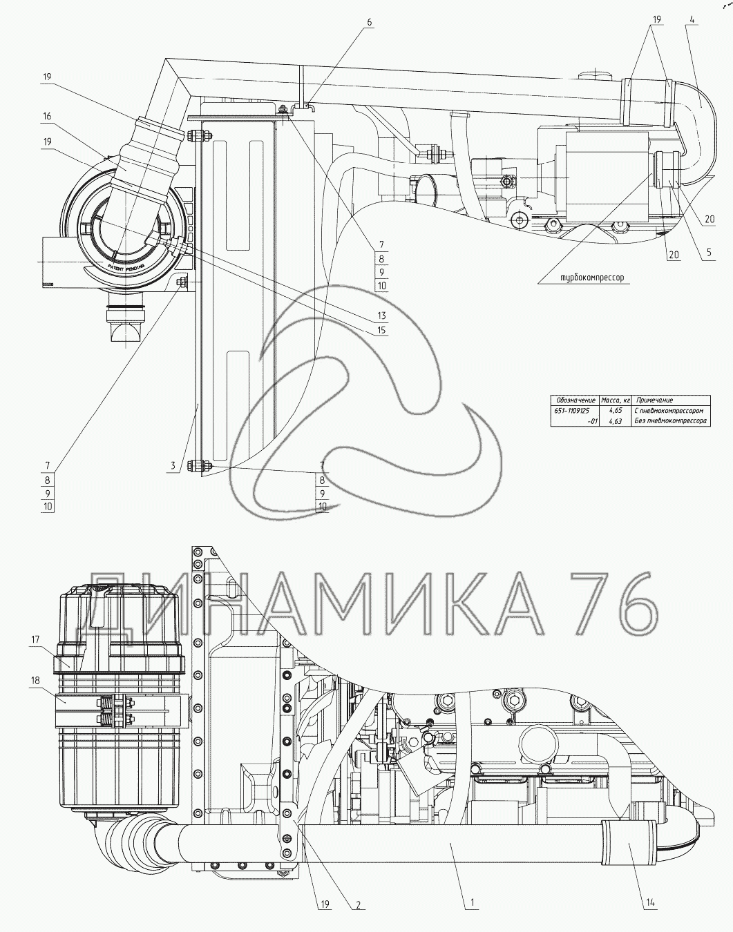Перечень комплектующих от Установка воздухоочистителя на БЕЛАРУС 451