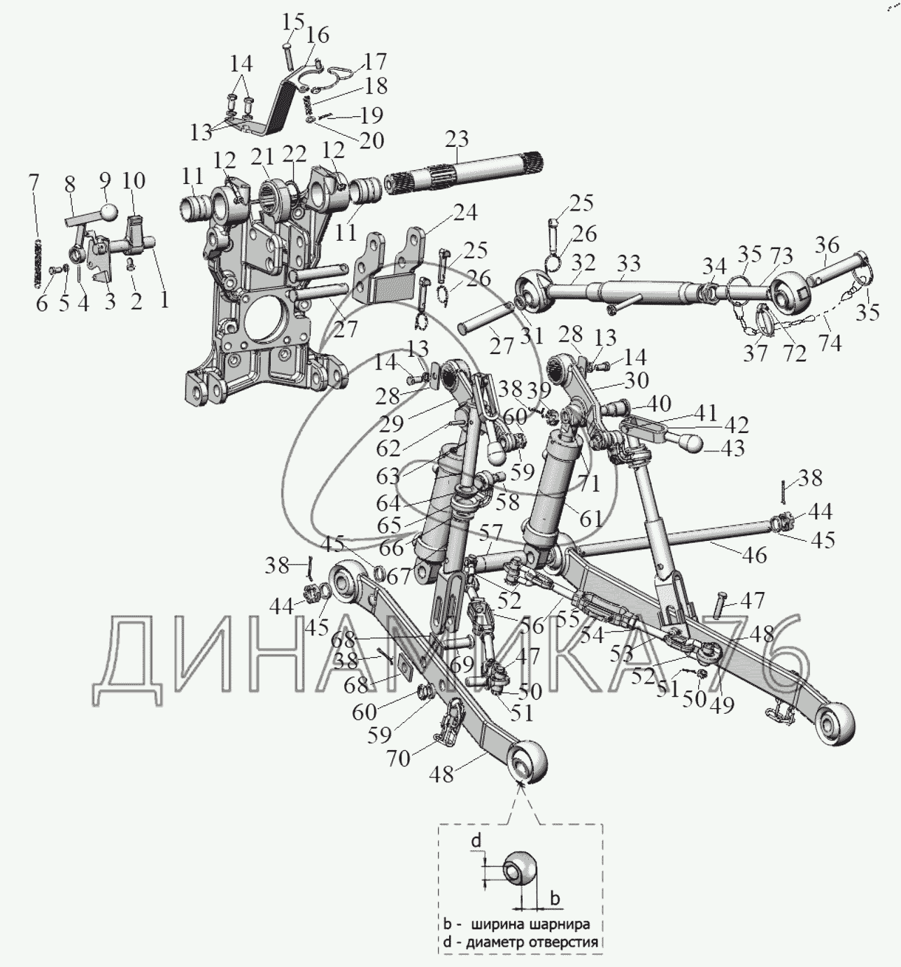Перечень комплектующих от Механизм передней навески на БЕЛАРУС 651