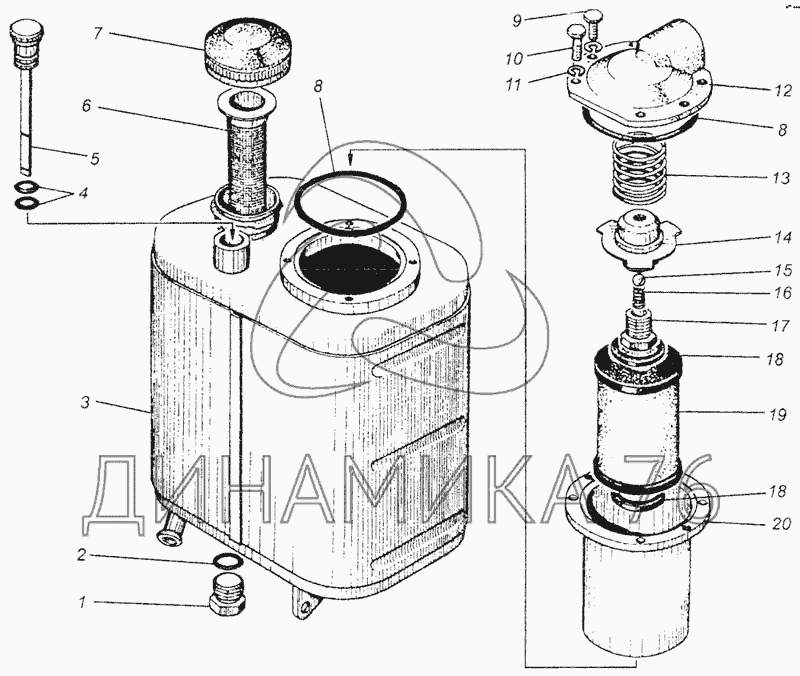 Перечень комплектующих от Бак гидросистемы 082-4608 на МТЗ-082