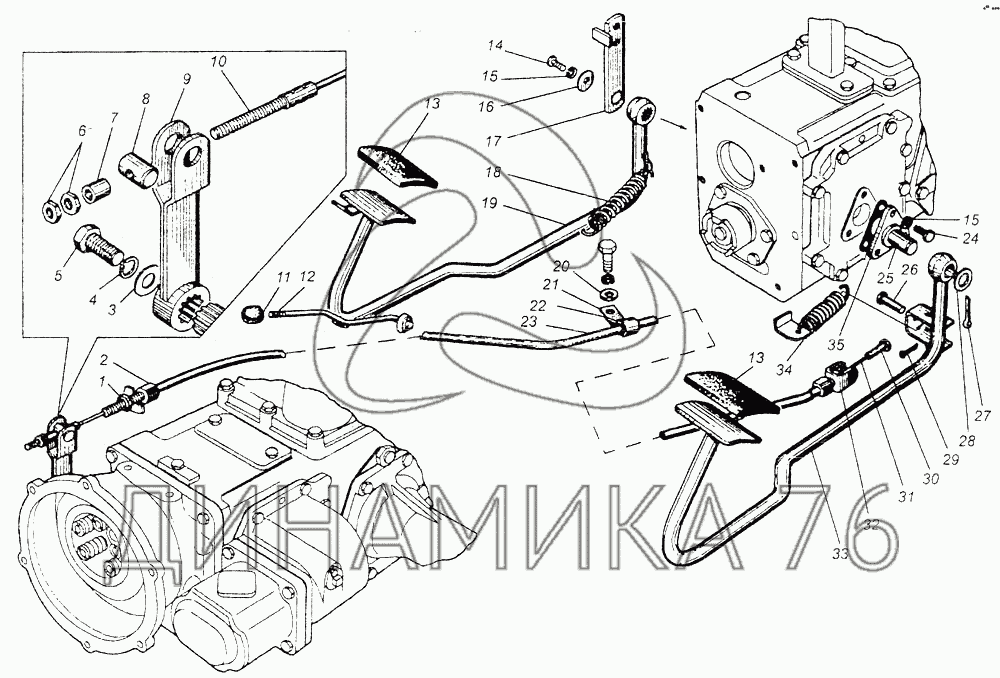 Перечень комплектующих от Управление сцеплением 082-1602 на МТЗ-082