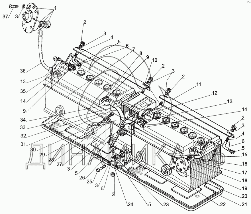 Схемы запчастей предназначены для справочных целей! Мы продаем не все запчасти от Аккумуляторная батарея на МТЗ-1005, представленные в этом списке.