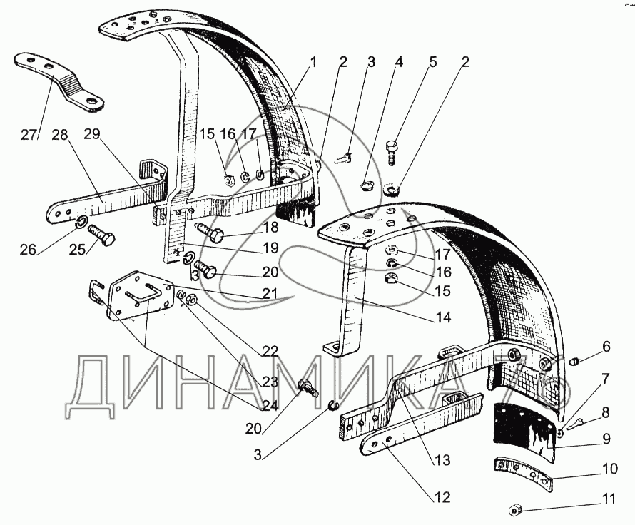 Перечень комплектующих от Крылья передние на МТЗ-1005