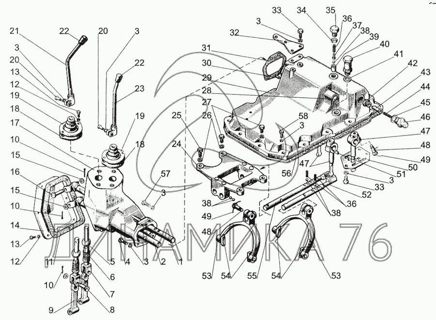 Механизм управления коробкой передач на МТЗ-1005 (до 2008 г.)