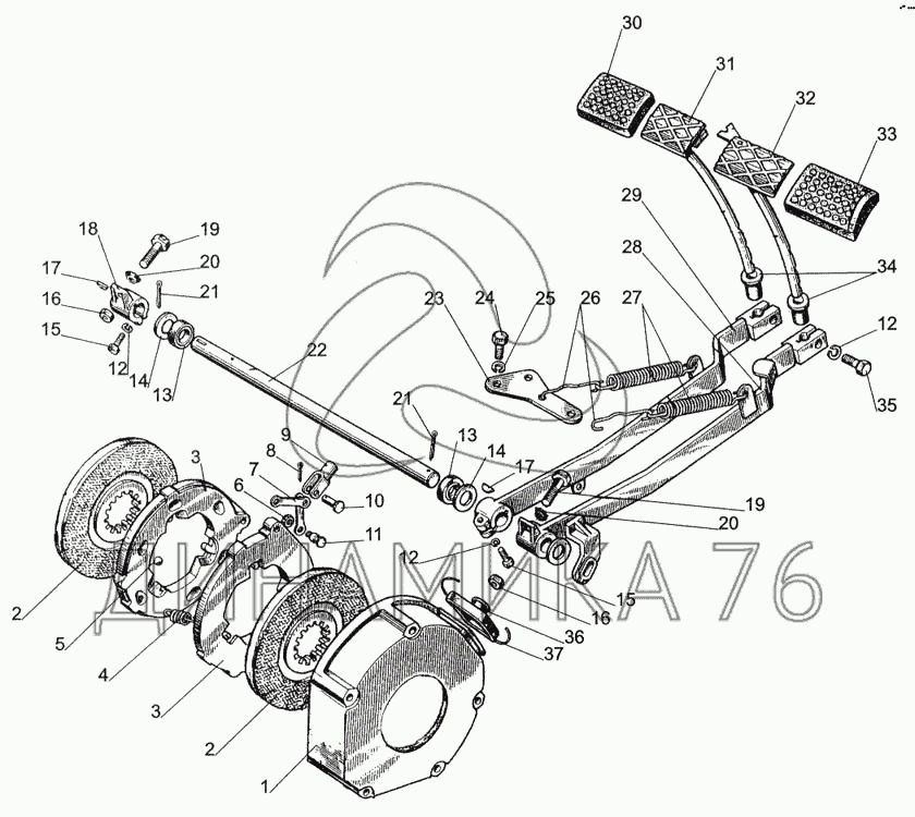 Перечень комплектующих от Тормоза. Управление тормозами на МТЗ-1005