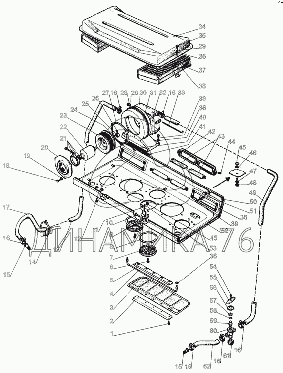 Схемы запчастей предназначены для справочных целей! Мы продаем не все запчасти от Установка отопителя на МТЗ-1005, представленные в этом списке.