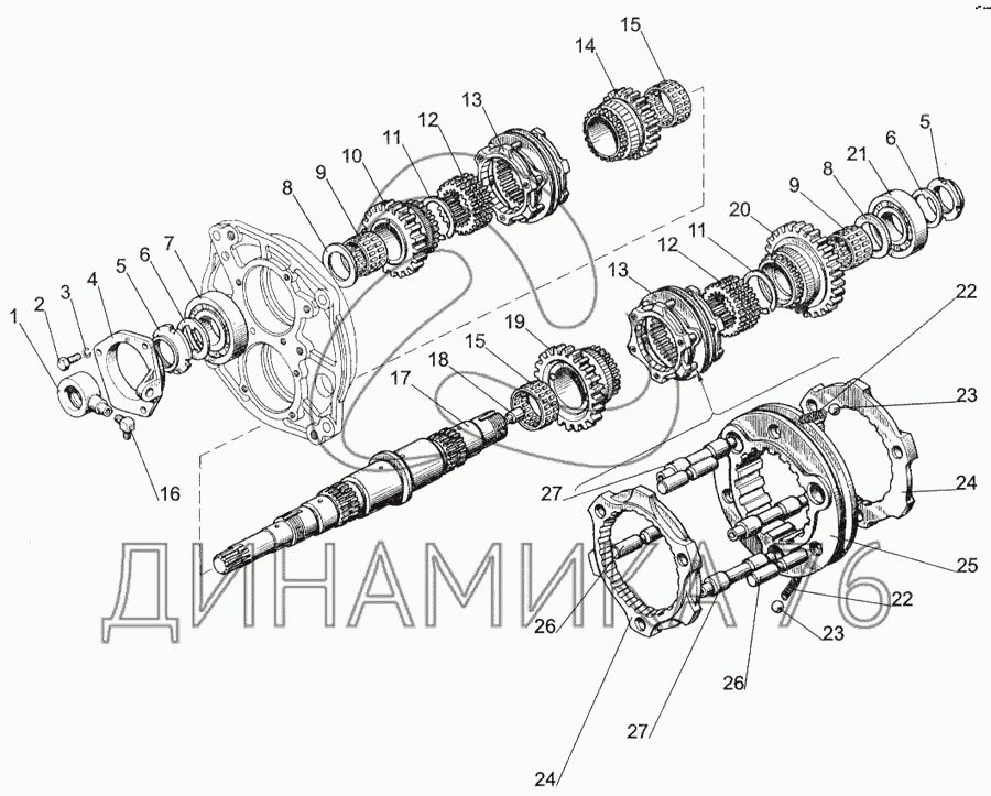 Перечень комплектующих от Узел коробки передач на МТЗ-1005